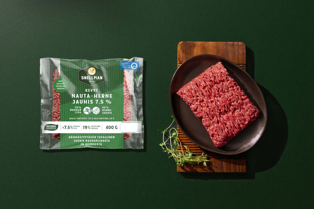 Herra Snellman -tuotemerkin viimeisin osoitus rohkeudesta kehittyä ajan mukana on tänään kaupoissa myyntiin tullut Kevyt Nauta-Hernejauhis 7,5 %. Naudanlihasta ja herneproteiinista valmistettu tuote on runsasproteiininen ja hämmästyttävän tavallinen vaihtoehto perinteiselle jauhelihalle.